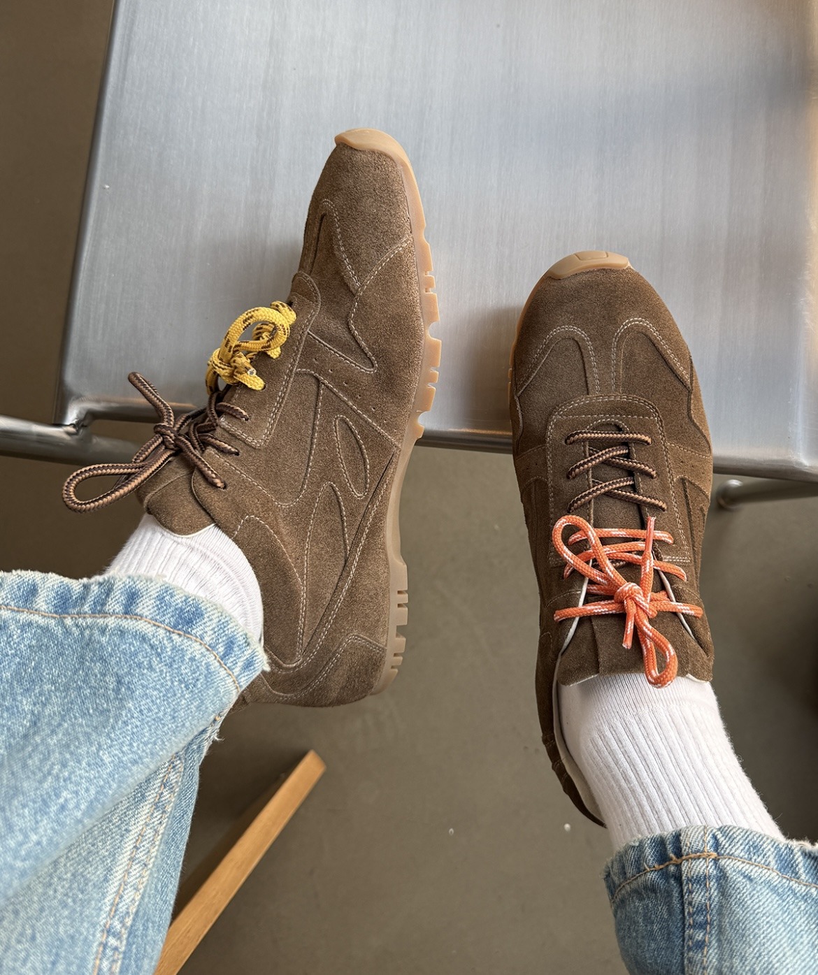 En så supersnygg sneaker i en mjuk nättare stil. Mjukt mockaskinn och mjukt skinn på insidan av skon, riktig gummisula. Det kommer med ett par extra snören i läckert gult som man kan variera sin skor med. Från det danska märket Phenumb Copenhagen som handsyr alla sina skor /boots i Europa.