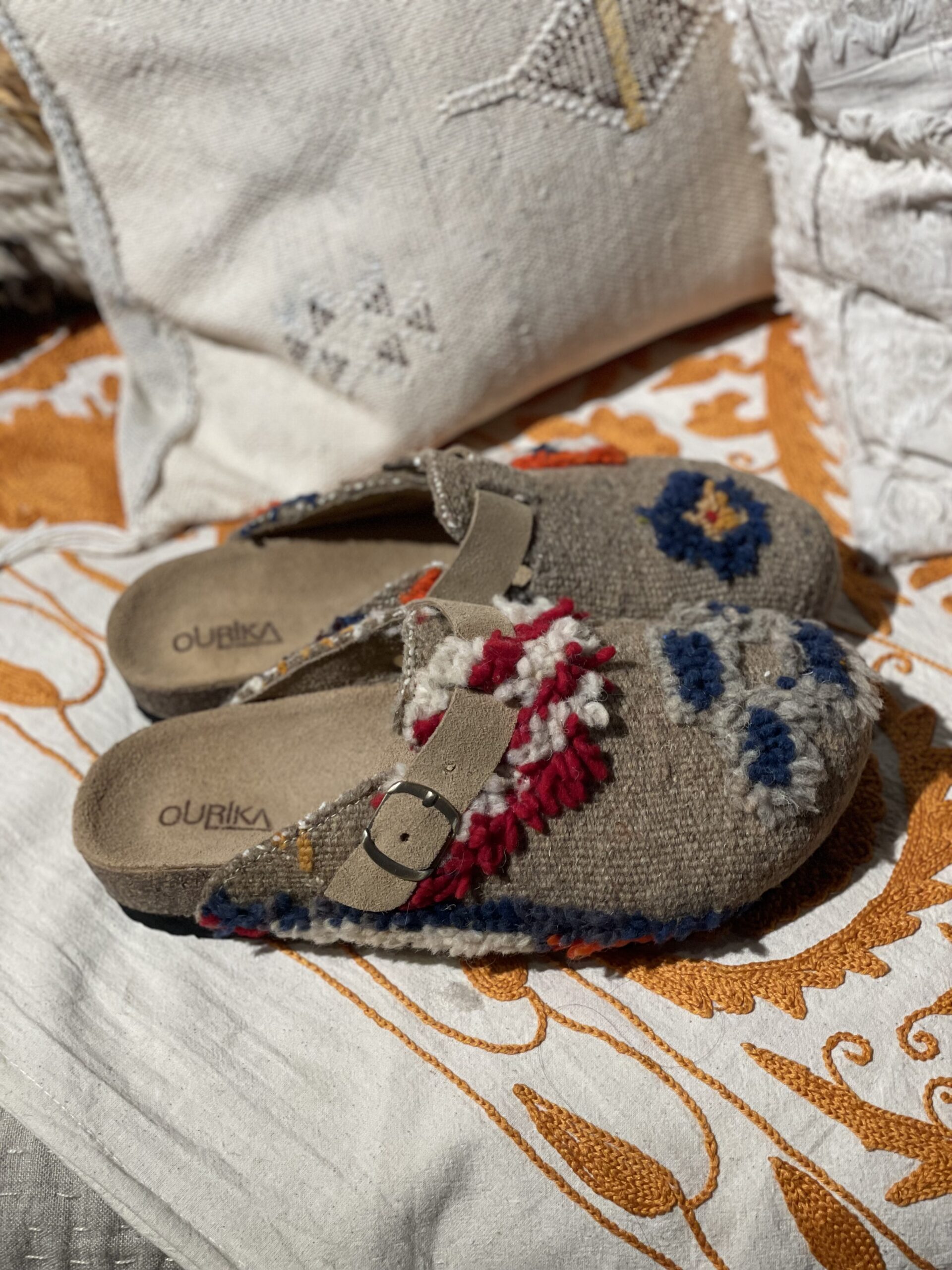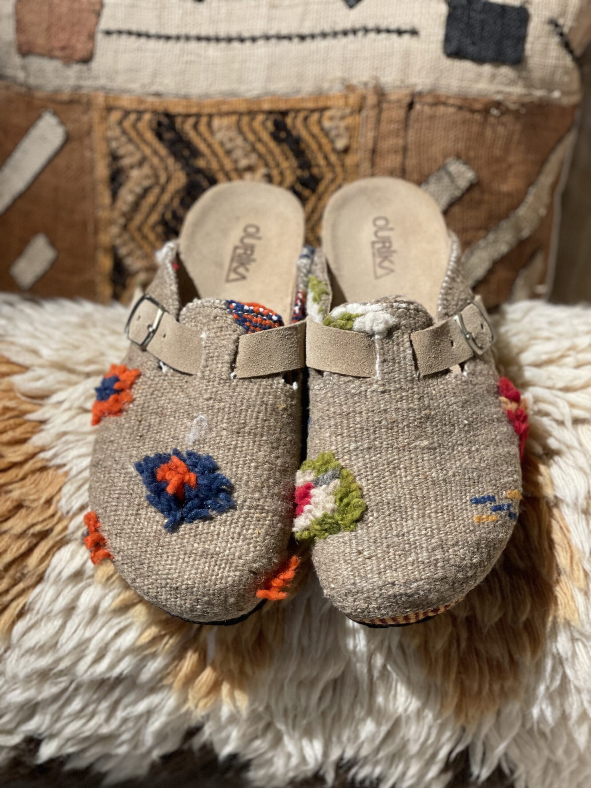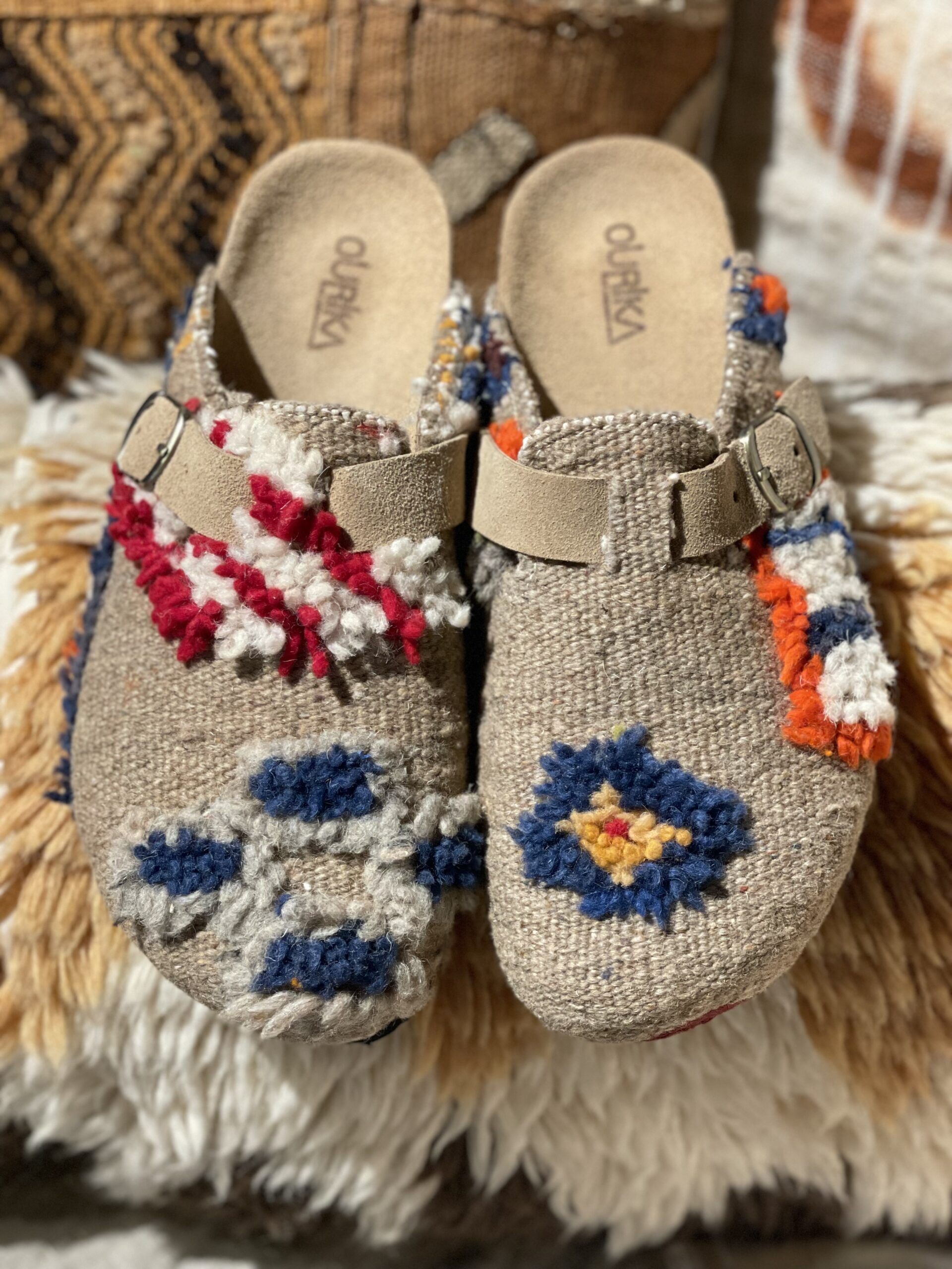 Sommarens absolut coolaste snyggaste clogs kommer från Marrakech, Ourika the label. Varje sko är unik och finns bara i ett par eftersom överdelen på tofflorna är sydda av kelimrugs. Skon är handsydd, fodrad i mjukt skinn och sulan är formad som en birkenstock och i mjukt mockaskinn. De här tofflorna har seglat upp och blivit oerhört efterfrågade bland alla boholuxe trendiga människor och jag kan bara hålla med, skönare coolare tofflor finns inte. Våra kommer från det lilla fina franska märket Orika the label, Christine en ung fransyska designar och tofflorna sys för hand i Marocko.