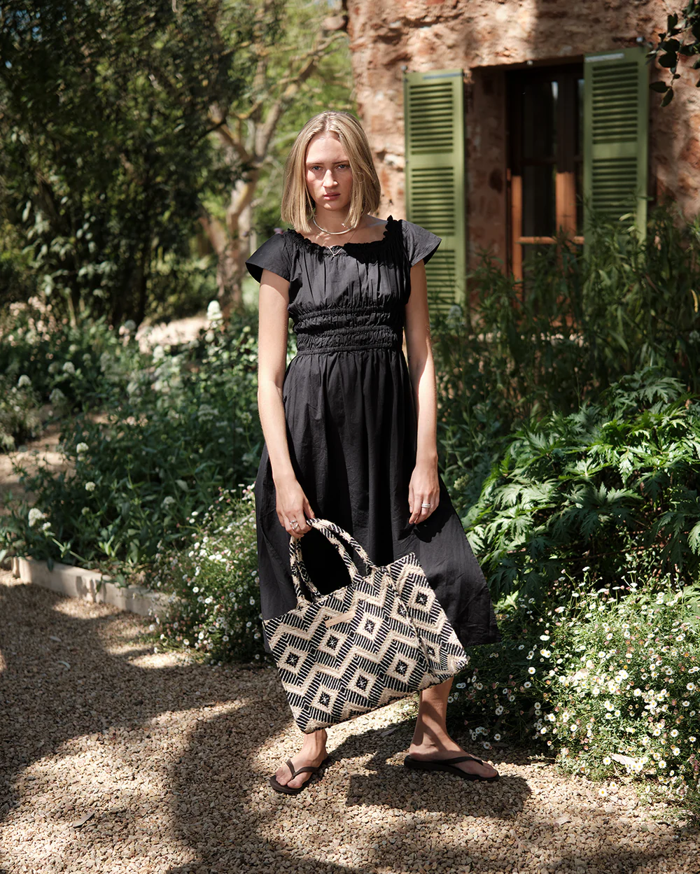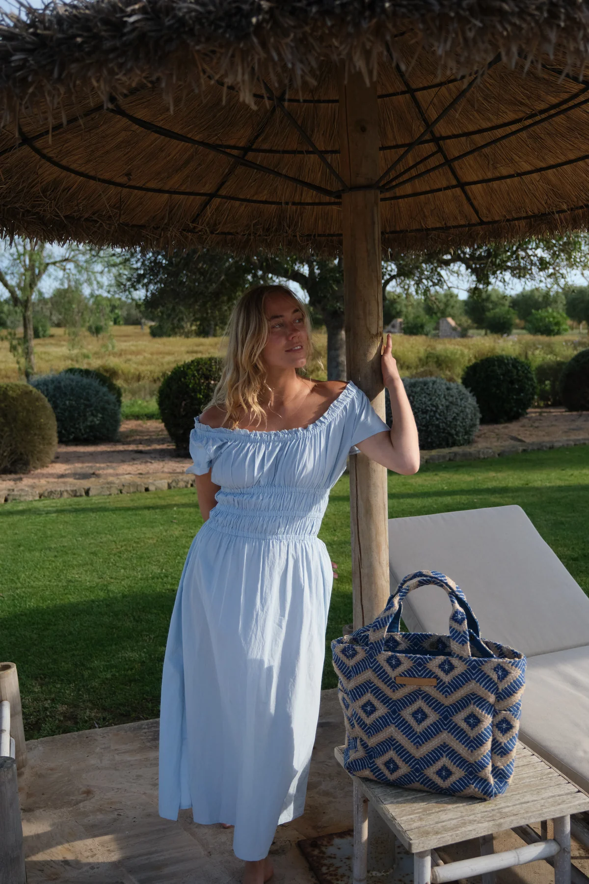 Positano en underbar klänning i fantastisk bomullskvalitet, vacker modell med smockresår i midjan som skapar en vacker timglasform.