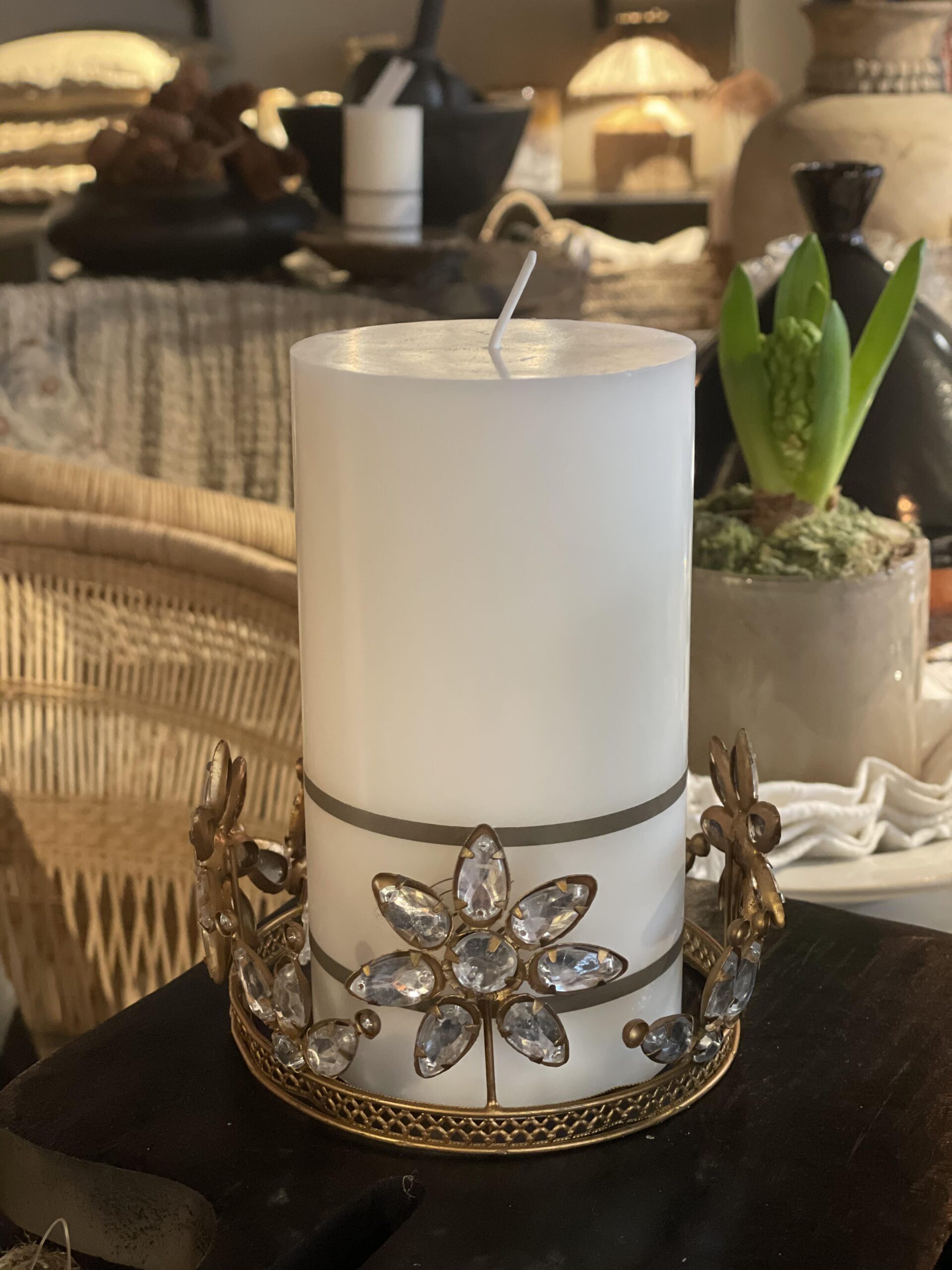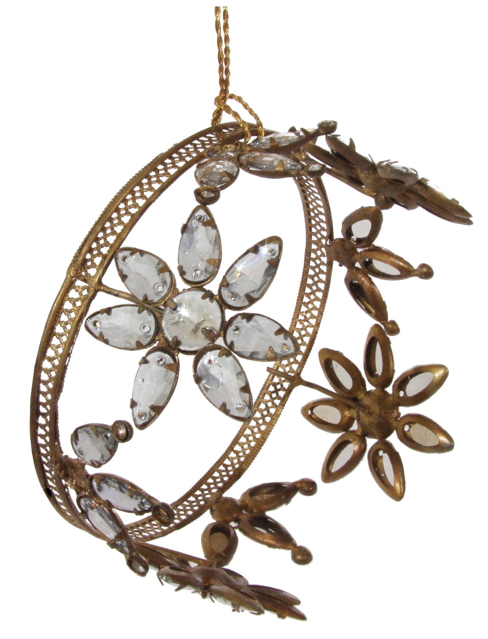 Häng denna vackra antika krona i din gran eller sätt den runt ett ljus som en ljusmanchett, känn den rustika julvärmen. Denna kron-formade julgransdekoration är 11 cm i storlek, gjord av metall och har ett antikt guldutseende med blom- och juvelinspirerade detaljer. Denna julgransdekoration kommer bidra med ett festligt utseende till din julgranen. En fantastisk juvel att hänga i din julgran.